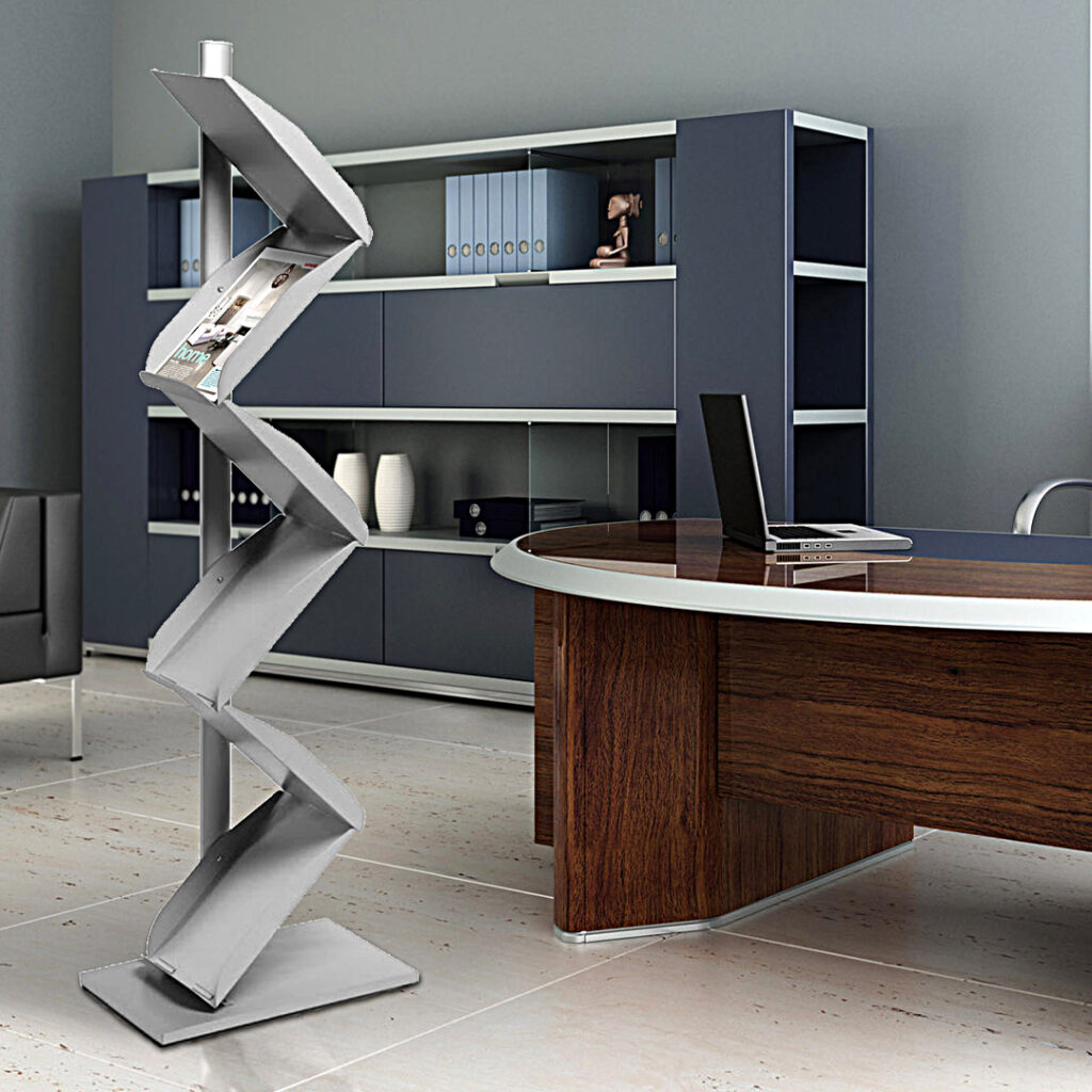 Se gli avvisi o i dépliant sono tanti e lo spazio è poco, l’alternativa può essere un espositore da terra, che poggia su una colonna, una torre di alluminio, una piccola base o autoportante. Alcuni modelli possono contenere fino a 18 dépliant.
