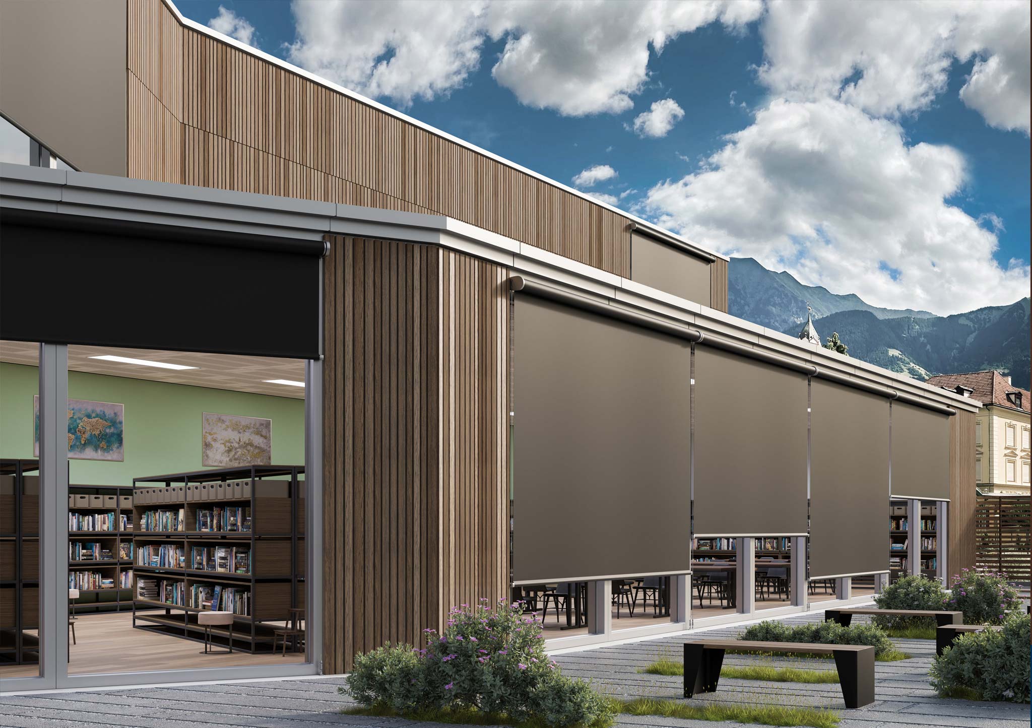 Progettate per coprire spazi verticali, rendendole adatte sia per terrazzi che per finestre e vetrate. Hanno delle guide laterali in acciaio che tramite una serie di fori sul tessuto mantengono la tenda in posizione corretta anche in presenza di vento forte.